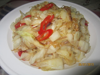 - Masukkan kobis, cili merah dan garam secukup rasa. Gaul rata hingga kobis layu dan masak. (Tak perlu masukkan air)
